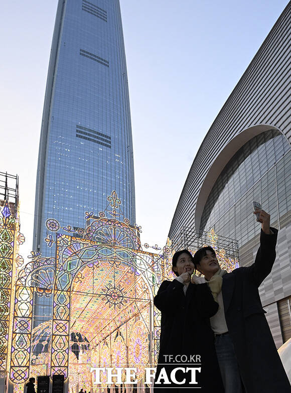 [더팩트 | 송호영 기자] '2026 롯데 루미나리에 Wish Shines on'이 열린 11일 오후 서울 송파구 롯데월드타워 월드파크에서 모델들이 포즈를 취하고 있다.