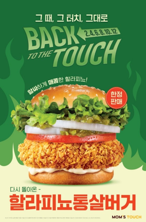 "‘Back to the TOUCH’ 캠페인 론칭" 맘스터치, 추억 속 메뉴 ‘할라피뇨통살버거’ 전국 매장서 3월 말까지 한정 판매