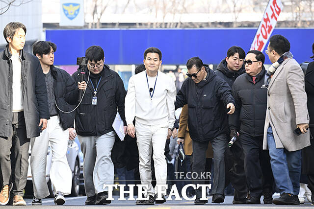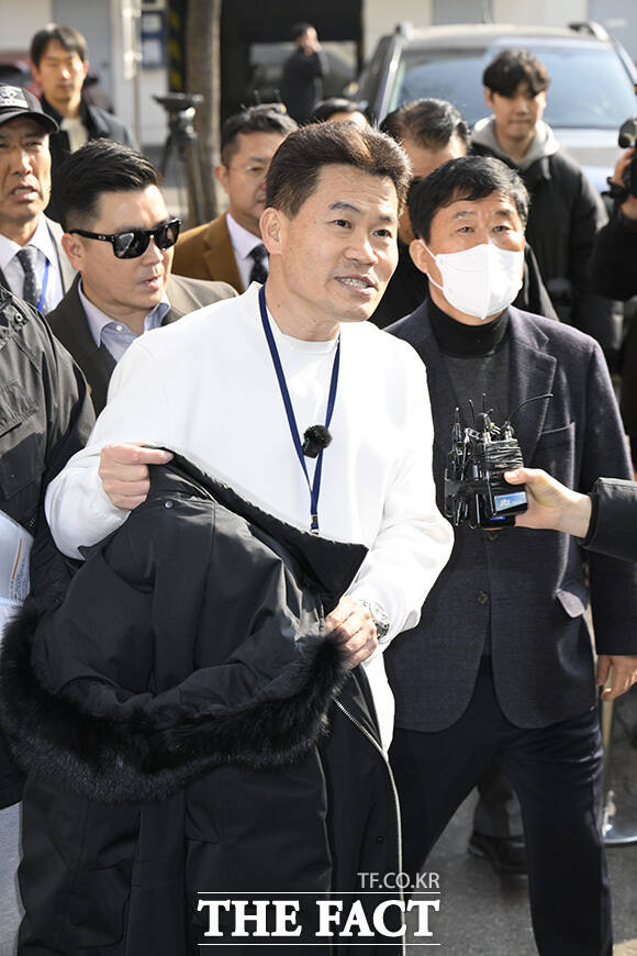 [더팩트 | 송호영 기자] 한국사 강사 출신 보수 유튜버 전한길 씨가 12일 오전 피의자 신분 소환 조사 차 서울 동작경찰서에 출석하며 본인이 제작한 영화에 대한 기자들의 질문에 답하고 있다.