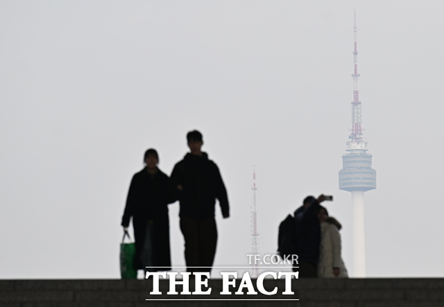 [더팩트ㅣ이새롬 기자] 전국 곳곳에서 미세먼지 농도가 '나쁨' 수준으로 예보된 12일 서울 용산구 국립중앙박물관에서 바라 본 N서울타워가 뿌옇게 보이고 있다.