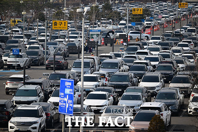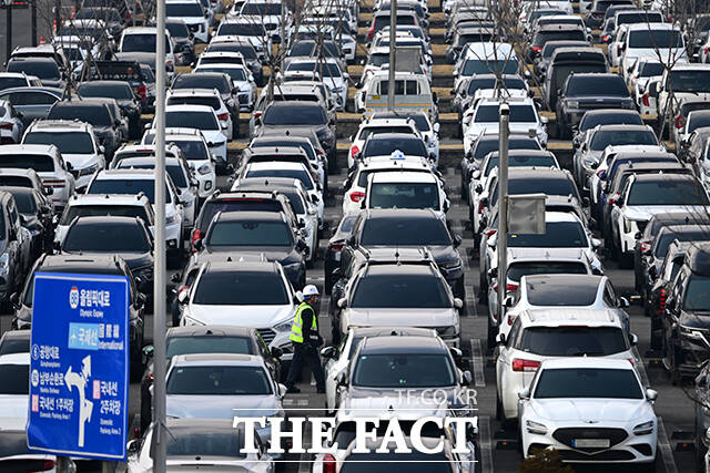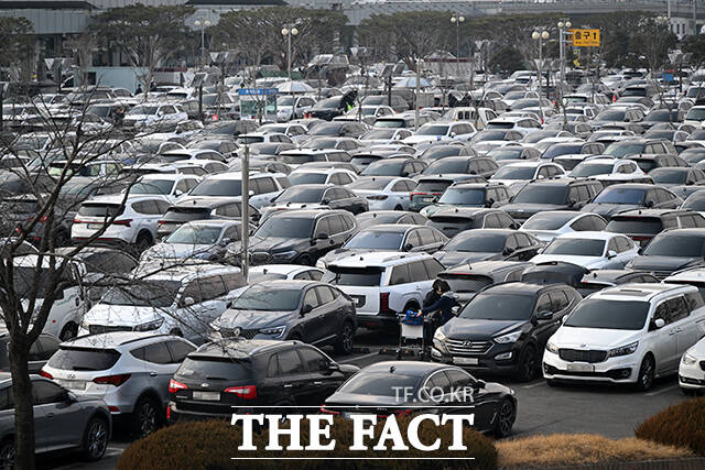 [더팩트ㅣ김포국제공항=남윤호 기자] 설 연휴를 이틀 앞둔 12일 오후 서울 강서구 김포국제공항 제1주차장에서 한 시민이 주차된 이용객들 차량 사이로 걸음을 옮기고 있다.