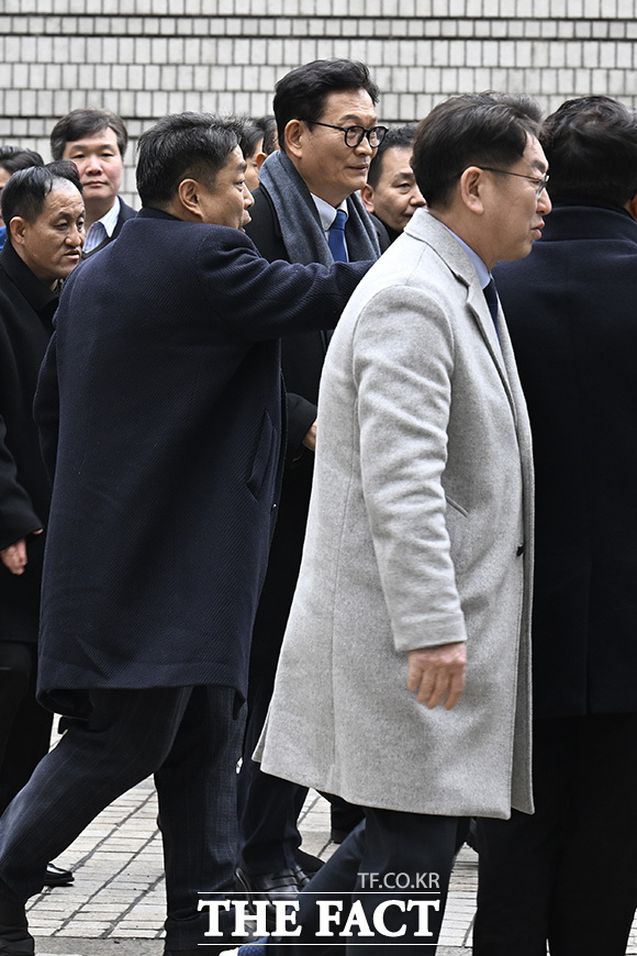 [더팩트 | 송호영 기자] '더불어민주당 전당대회 돈봉투' 의혹 등 불법 정치자금 수수 혐의로 1심에서 징역 2년을 선고받은 송영길 소나무당 대표가 13일 서울 서초구 서울고등법원에서 열린 항소심 선고기일에 출석하고 있다.