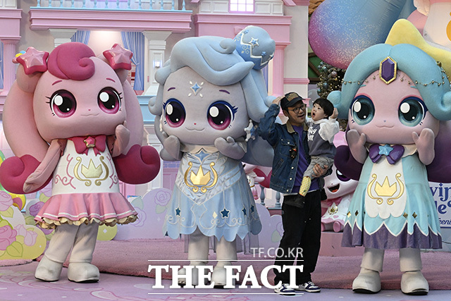 [더팩트 | 송호영 기자] 설 연휴 둘째 날인 15일 오후 서울 송파구 롯데월드 어드벤처를 찾은 한 가족이 '티니핑' 캐릭터와 사진을 찍고 있다.