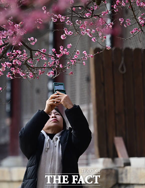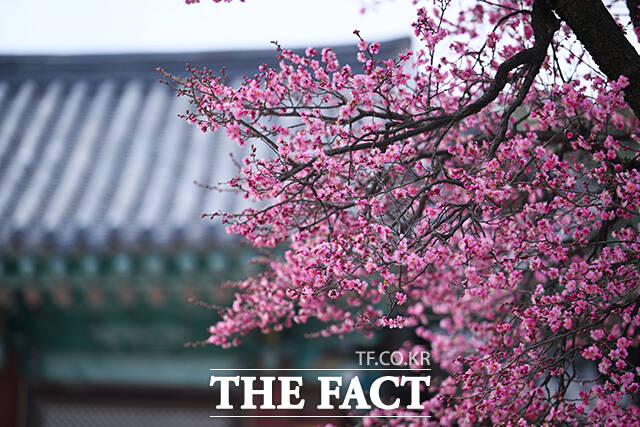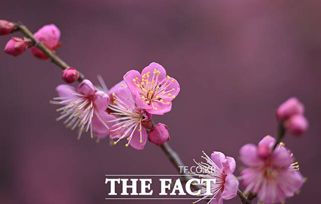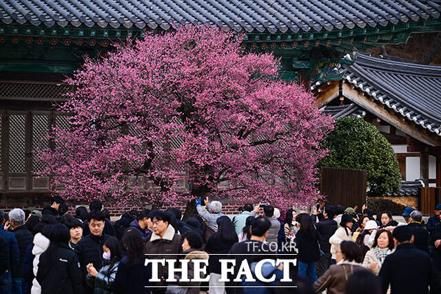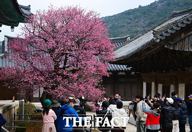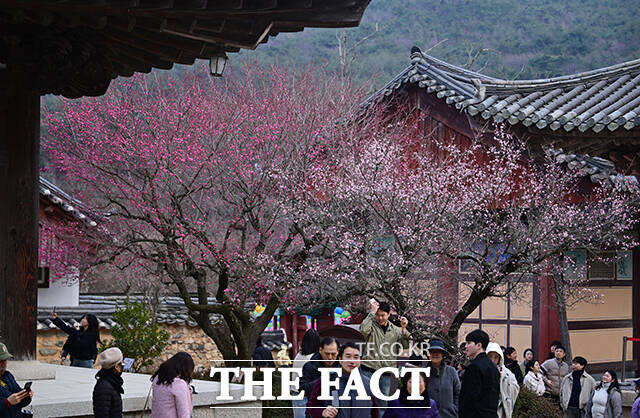 [더팩트ㅣ양산=박헌우 기자] 설을 하루 앞둔 16일 오후 경남 양산시 통도사에 '봄의 전령'으로 불리는 홍매화가 피어 있다.