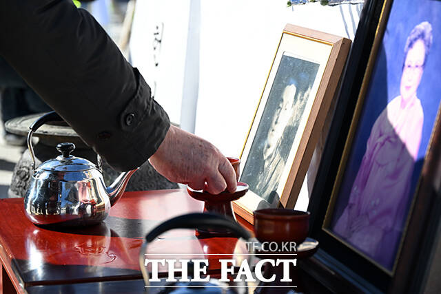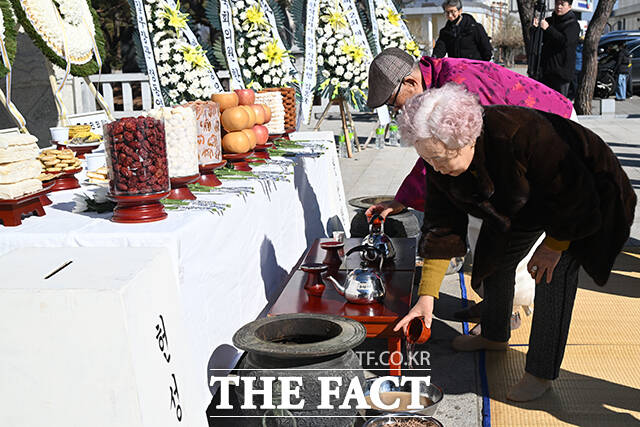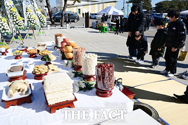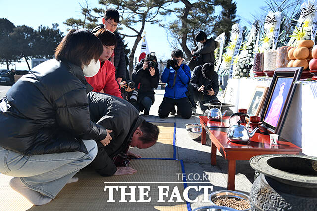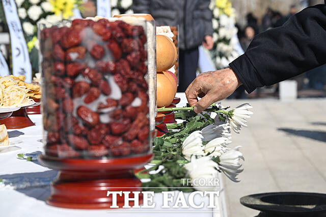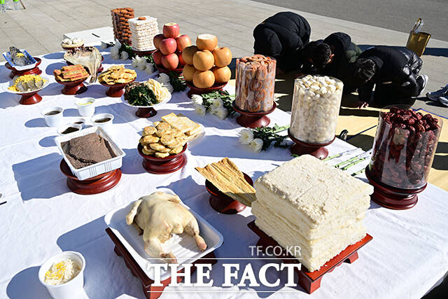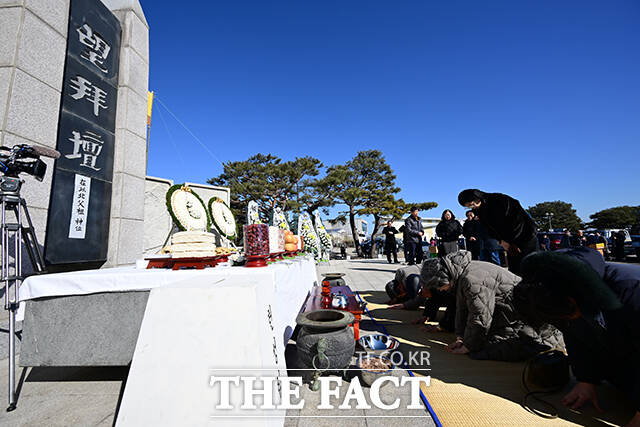 [더팩트ㅣ파주=남윤호 기자] 민족 대명절 설을 맞은 17일 오전 경기 파주시 임진각 망배단에서 열린 제42회 망향경모제를 찾은 실향민 가족이 차례를 지내고 있다.