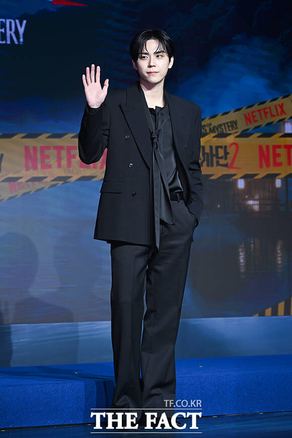 [더팩트ㅣ서예원 기자] 댄서 가비와 배우 혜리, 그룹 에스파의 카리나, 가수 존박, 배우 김도훈, 방송인 이용진(왼쪽 위부터 시계방향으로)이 19일 오전 서울 마포구 호텔 나루 서울 엠갤러리에서 열린 넷플릭스 오리지널 예능 ‘미스터리 수사단’ 시즌2 제작발표회에 참석해 포즈를 취하고 있다.