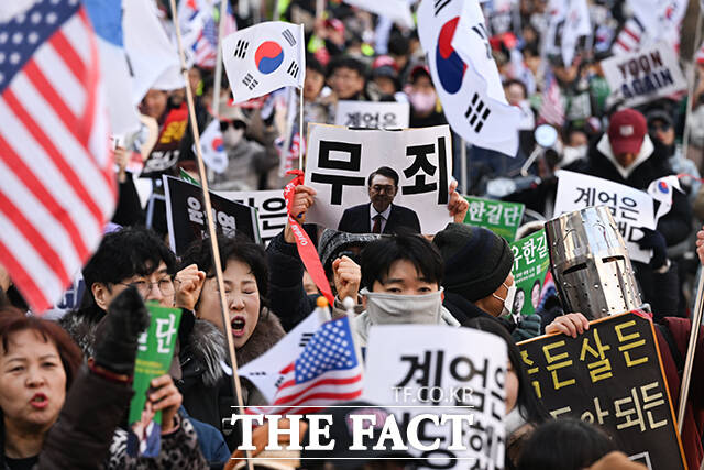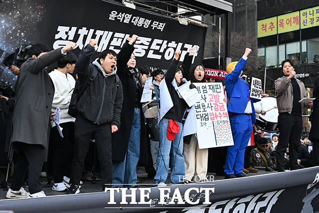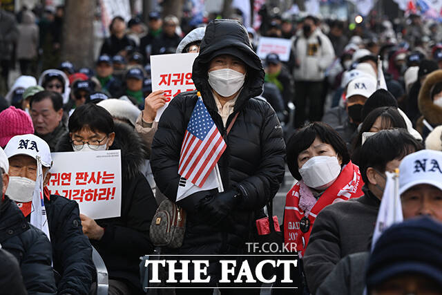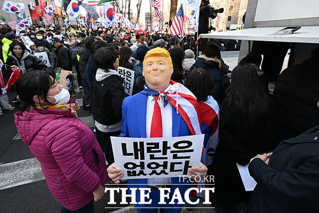 한편 윤 전 대통령의 지지자들은 이날 붉은 옷차림으로 태극기와 성조기를 흔들며 "윤 어게인"과 "공소기각"을 외쳤다. 도널드 트럼프 미국 대통령 차림을 한 지지자도 '내란은 없었다'라고 적힌 손팻말을 들고 공소 사실을 부정하는 모습을 보였다.