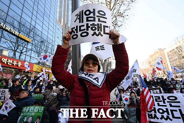 [더팩트 | 김성렬 인턴기자] 윤석열 전 대통령의 내란 우두머리 혐의 1심 선고 날인 19일 오후 서울 서초구 서울중앙지법 인근에서 집회 참석자가 윤 전 대통령의 1심 무기징역형 선고에 눈물을 흘리고 있다.