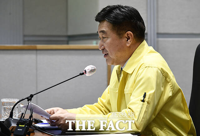 [더팩트 | 박상민 인턴기자] 윤호중 행정안전부 장관이 23일 오전 정부서울청사에서 열린 경남 함양등 산불 대응상황 점검회의에 참석해 모두발언을 하고 있다.
