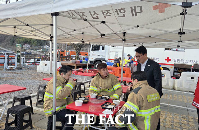 김 총리는 이날 화재 진압 현장을 찾아 산불 대응 상황 점검회의를 주재하고 조식중인 소방 대원들을 격려했다. 이어 피해 지역의 주민들이 대피중인 어울림체육관을 찾아 이재민들의 어려움을 청취했다.