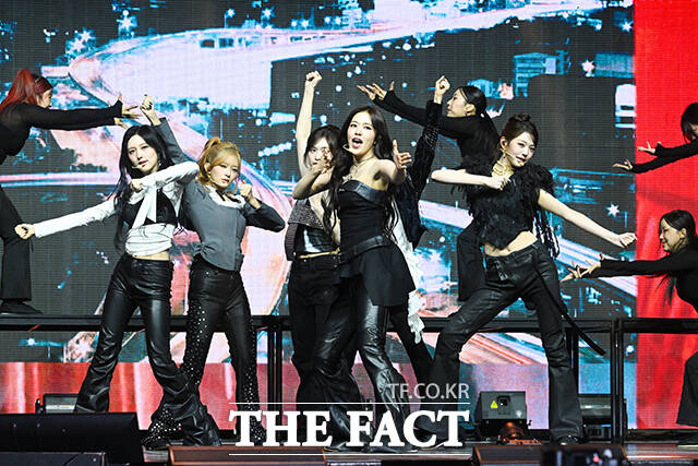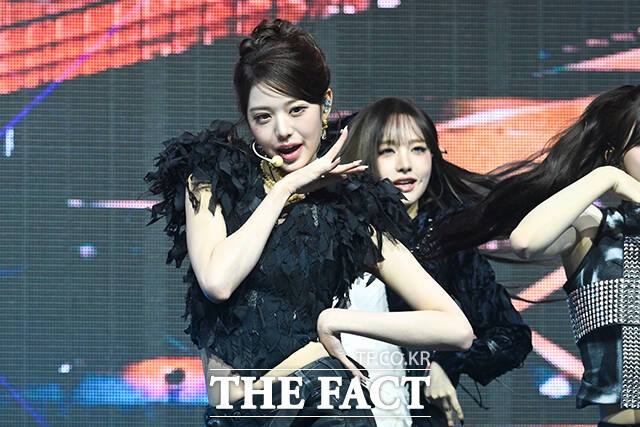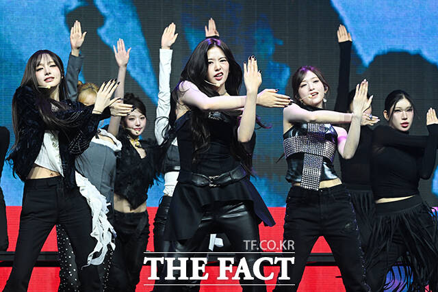 [더팩트ㅣ서예원 기자] 그룹 아이브가 23일 오후 서울 광진구 예스24 라이브홀에서 열린 정규 2집 ‘REVIVE+(리바이브 플러스)’ 발매 기념 미디어 쇼케이스에 참석해 타이틀곡 ‘블랙홀(BLACKHOLE)’ 무대를 펼치고 있다.
