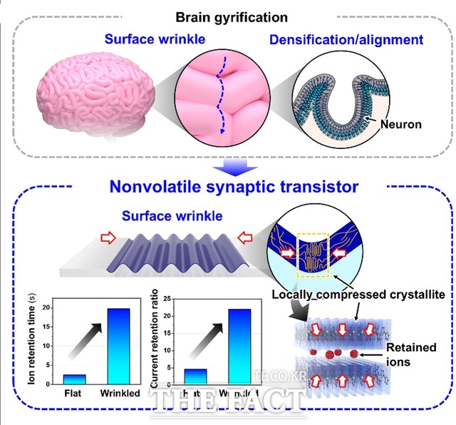 [더팩트 | 구미=정창구 기자] 국립금오공과대학교와 서울과학기술대학교, 가천대학교 공동 연구팀이 인간 뇌의 주름 구조를 모사해 인공 신경소자의 메모리 성능을 4배 이상 끌어올리는 데 성공했다.