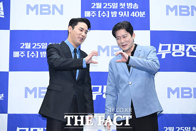 [더팩트ㅣ서예원 기자] 가수 장민호(왼쪽)와 방송인 김대호가 25일 오전 서울 마포구 상암 스탠포드호텔 코리아에서 열린 MBN 오디션 프로그램 ‘무명전설-트롯 사내들의 서열전쟁’ 제작발표회에 참석해 포즈를 취하고 있다.