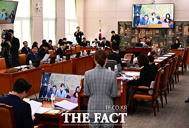 [더팩트ㅣ국회=배정한 기자] 문화체육관광위원회 전체회의가 26일 오전 서울 여의도 국회에서 열린 가운데 국민의힘 의원들의 좌석이 비어있다.