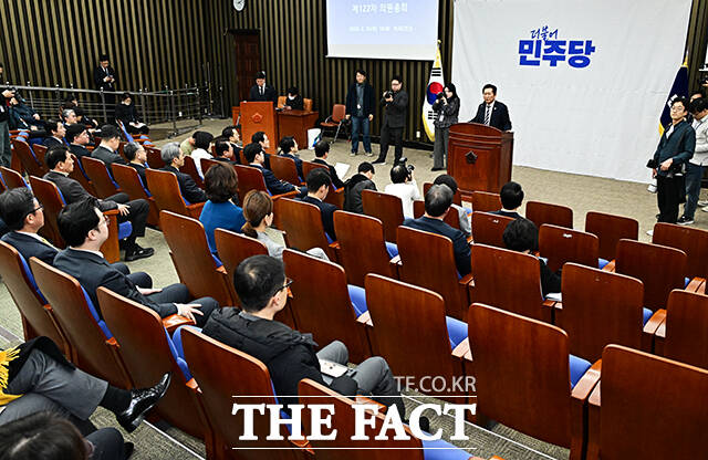 [더팩트ㅣ국회=배정한 기자] 정청래 더불어민주당 대표가 26일 오후 서울 여의도 국회에서 열린 의원총회에 참석해 모두발언을 하고 있다.