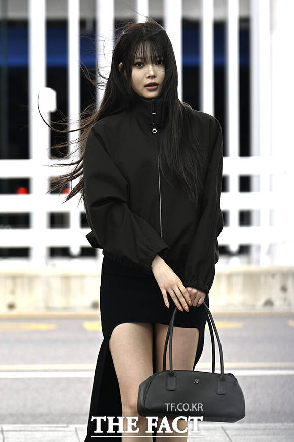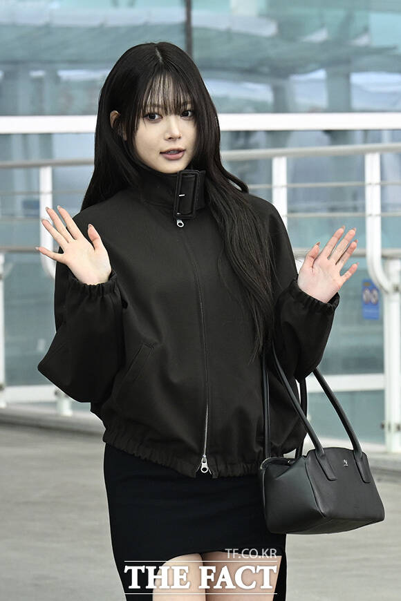 [더팩트 | 인천국제공항=송호영 기자] 그룹 르세라핌의 은채가 3일 오전 해외 일정 참석을 위해 인천국제공항에서 프랑스 파리로 출국 중 포즈를 취하고 있다.