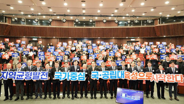 이날 토론회는 김문수 더불어민주당 의원과 국가중심 국·공립대 지역 국회의원, 국가중심 국·공립 글로컬대학이 공동 주최했다. 행사에는 여야 국회의원과 국가중심 국·공립대 총장, 대학 구성원 등 약 400여 명이 참석했다.