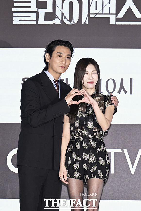 [더팩트 | 송호영 기자] 배우 주지훈과 하지원이 10일 오후 서울 구로구 디큐브시티 더세인트 그랜드볼룸에서 열린 ENA 월화드라마 '클라이맥스' 제작발표회에 참석해 포즈를 취하고 있다.
