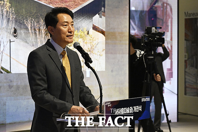 [더팩트 | 송호영 기자] 오세훈 서울시장이 12일 오후 서울 금천구 서울시립 서서울미술관 개관식에 참석해 전시관을 둘러보고 있다.