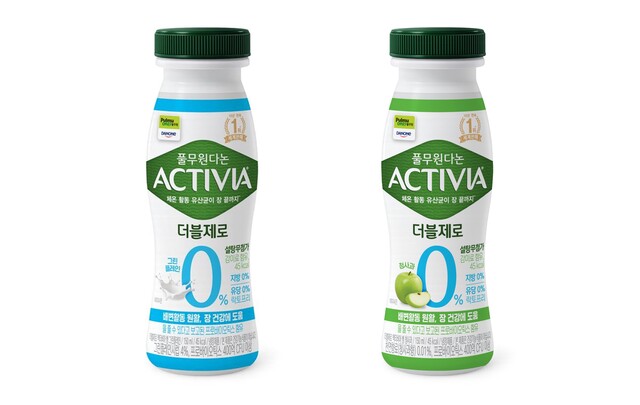'더블제로 액티비아'는 설탕무첨가에 지방과 유당 함량을 모두 0%로 낮춘 150㎖ 병 타입의 마시는 요거트다. 이번 신제품은 지난 10년간 액티비아의 당 함량을 단계적으로 낮추고 일부 당을 대체 당으로 변경해온 풀무원다논의 지속적인 노력의 일환이다.