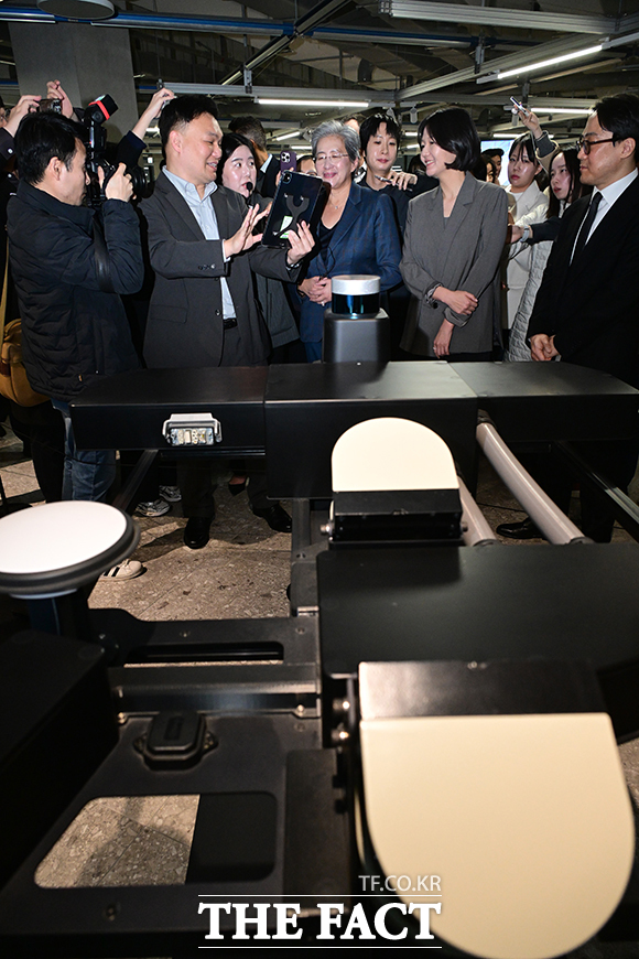 [더팩트ㅣ성남=남윤호 기자] 리사 수 AMD 최고경영자와 최수연 네이버 대표가 18일 경기 성남시 분당구 네이버 사옥에서 디지털트윈 전시와 관련해 설명을 듣고 있다. ilty012@tf.co.kr 사진영상기획부 photo@tf.co.kr