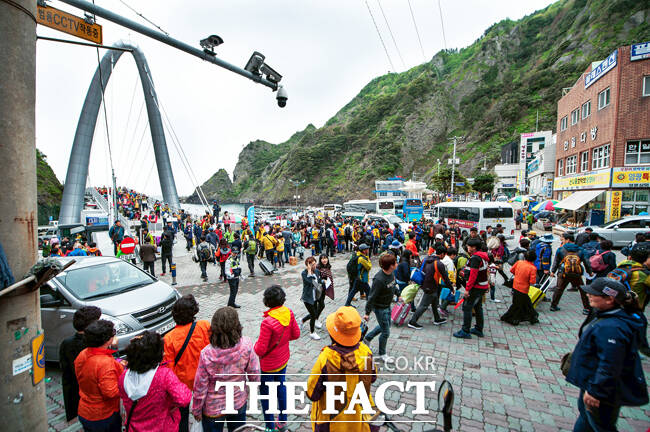 [더팩트ㅣ울릉=김성권 기자] 경북 울릉군을 찾는 관광객 수가 초봄부터 큰 폭으로 증가하며 지역 관광 경기에 훈풍이 불고 있다.