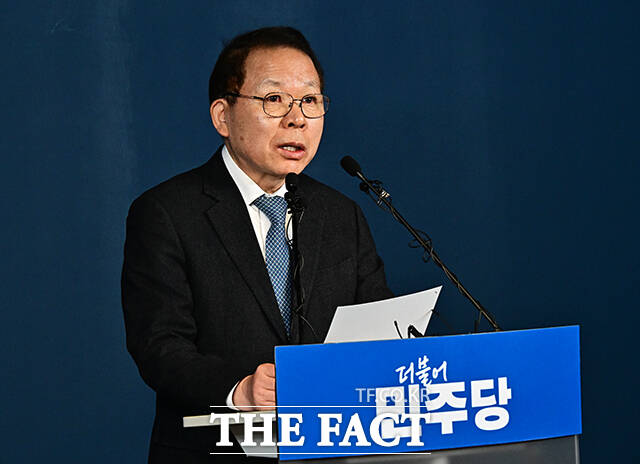 [더팩트ㅣ배정한 기자] 김이수 더불어민주당 공천관리위원장이 20일 오전 서울 여의도 민주당 중앙당사에서 대전시장 및 충남지사 공천 심사 결과를 발표하고 있다.