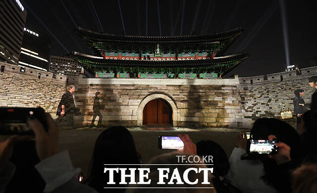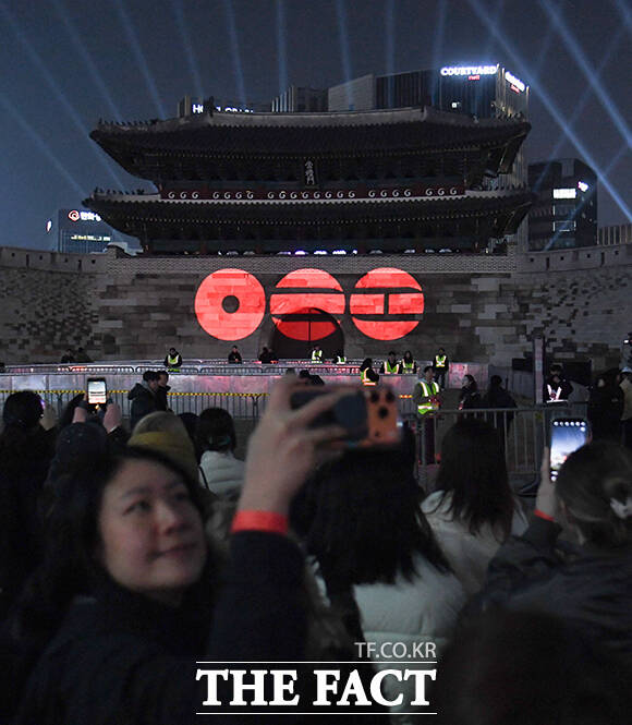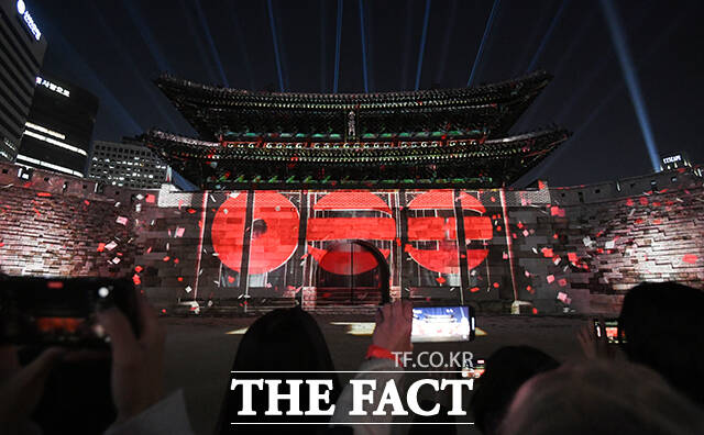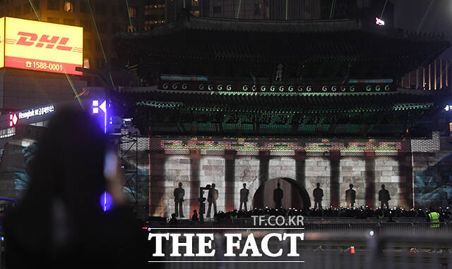 이날 오후 7시부터 BTS 컴백을 기념하는 미디어 파사드가 숭례문에서 상영됐다.