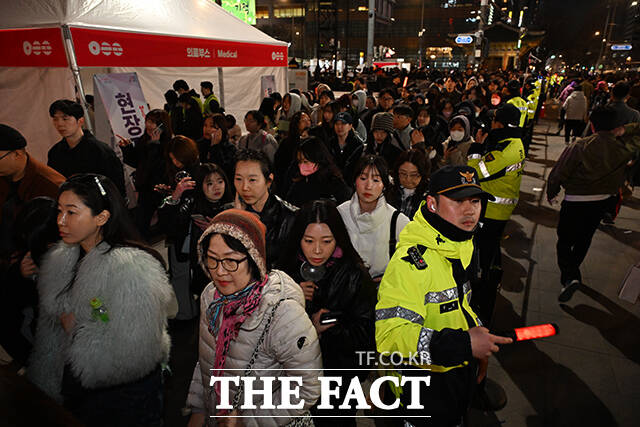 [더팩트 | 김성렬 기자] ‘BTS 컴백 라이브: 아리랑’이 종료된 21일 오후 서울 종로구 광화문광장 일대에서 팬들이 경찰의 통제에 따르며 귀가하고 있다.