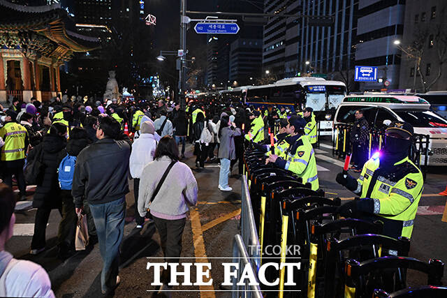 광화문 일대 사직로와 새문안로 등은 이날 밤 11시까지 통제가 이뤄진다. 세종대로 일부 구간은 다음 날 새벽까지 차량 통행이 제한된다. 해당 구간을 지나는 버스 역시 우회 운행한다.