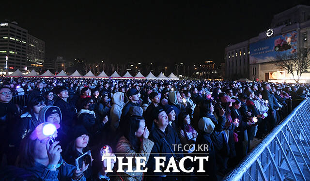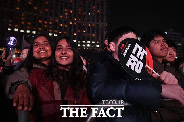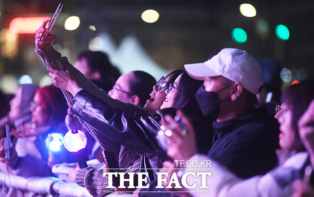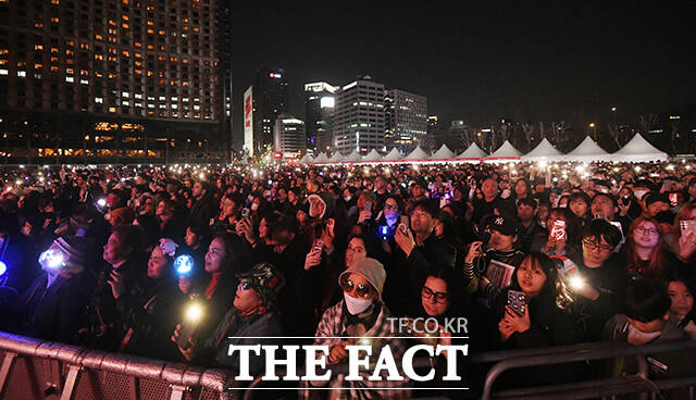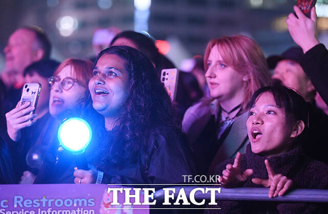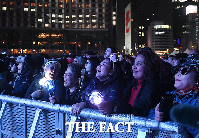 [더팩트 | 박상민 기자] 그룹 방탄소년단(BTS)이 21일 오후 서울 광화문 광장에서 정규 5집 '아리랑(ARIRANG)' 앨범 발매를 기념해 마련된 컴백 무대에 올라 신곡을 선보인 가운데 전 세계에서 모인 ARMY들이 공연을 관람하고 있다.