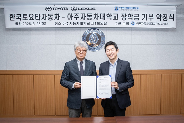 한국토요타자동차는 아주자동차대와 2020년 T-TEP 업무협약 체결 이후 전동화 트레이닝 아카데미 운영과 실습용 차량·부품 지원을 이어오고 있으며 2024년부터 3년간 총 2억4000만원의 장학금을 전달했다.