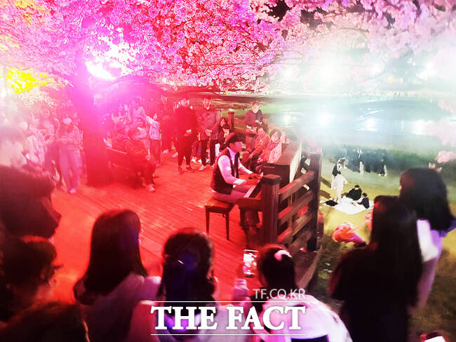 [더팩트ㅣ영주=김성권 기자] 경북 영주시의 숨은 벚꽃 명소인 원당천이 올봄 화려한 축제와 야간 경관 조명으로 시민들을 맞이한다.