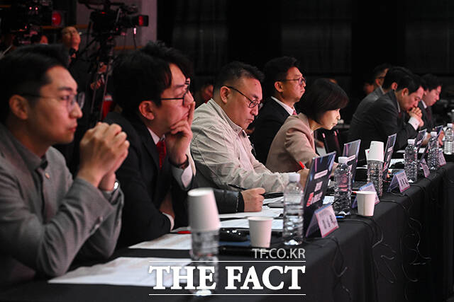 장동혁 국민의힘 대표는 인사말을 통해 "오늘 최종 선택을 받게 되는 분들이 처음에 함께 지원했던, 투표에 참여했던 청년들의 열정을 양 어깨에 얹고 정치를 해주셨으면 좋겠다"고 당부했다.