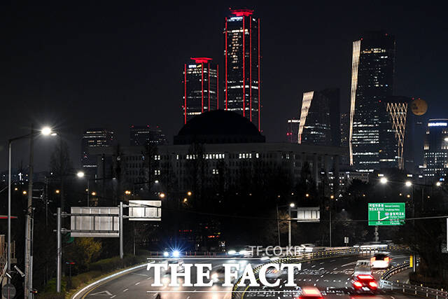 [더팩트ㅣ서예원 기자] 지구촌 전등 끄기 캠페인 ‘어스아워(Earth Hour)’가 실시된 28일 오후 서울 여의도 국회의사당에 불이 꺼져 있다.