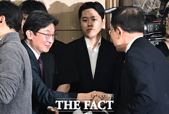 [더팩트ㅣ임영무 기자] 이억원 금융위원장(왼쪽)이 30일 오후 서울 종로구 정부서울청사에서 열린 중동상황 관련 금융권 간담회에 참석해 조용병 은행연합회장과 인사를 나누고 있다. darkroom@tf.co.kr사진영상기획부 photo@tf.co.kr