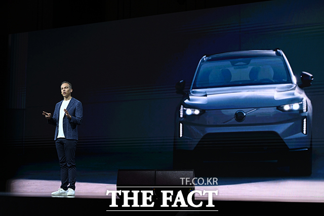 [더팩트ㅣ영종도=남윤호 기자] 1일 인천 중구 인스파이어 리조트에서 볼보의 차세대 전기 플래그십 SUV EX90이 공개된 가운데 에릭 세베린손 볼보 최고영업책임자 차량 설명을 하고 있다. ilty012@tf.co.kr 사진영상기획부 photo@tf.co.kr