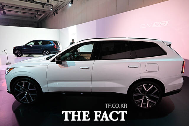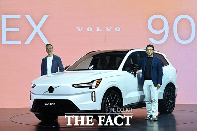 [더팩트ㅣ영종도=남윤호 기자] 1일 인천 중구 인스파이어 리조트에서 볼보의 차세대 전기 플래그십 SUV EX90이 공개된 가운데 에릭 세베린손 볼보 최고영업책임자(왼쪽), 이윤모 볼보자동차코리아 대표이사가 기념촬영을 하고 있다.