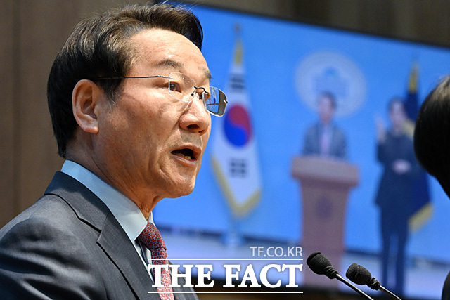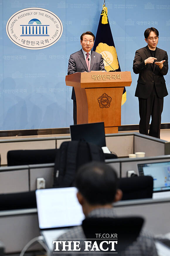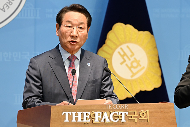 [더팩트ㅣ국회=남용희 기자] 유정복 인천시장이 3일 오후 서울 여의도 국회 소통관에서 기자회견을 열고 발언을 하고 있다.
