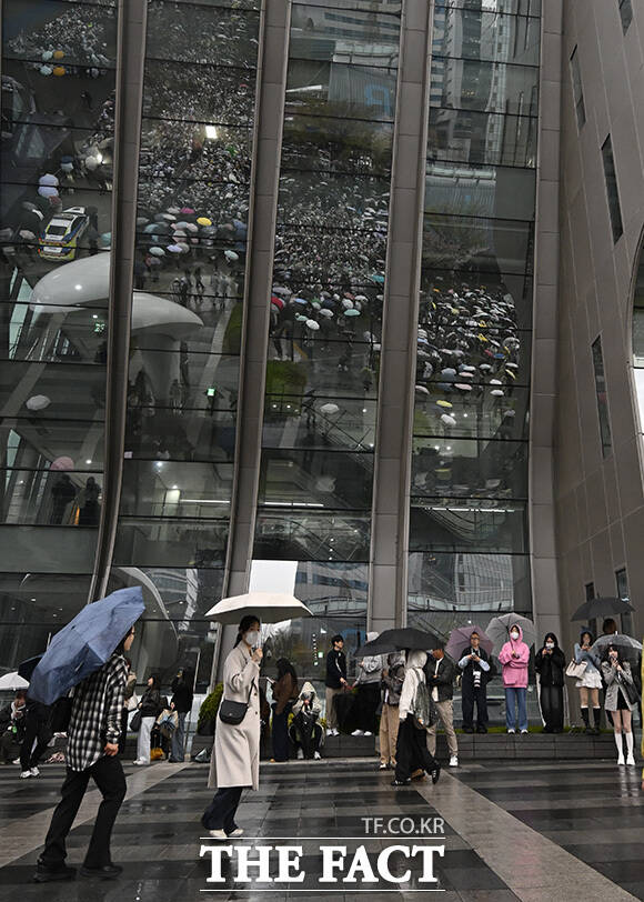 [더팩트 | 송호영 기자] 그룹 워너원(Wanna One)이 6일 오전 서울 마포구 상암동 DMC 문화공원에서 오프닝 세리머니 행사를 연 가운데 팬들이 멤버들을 기다리고 있다.