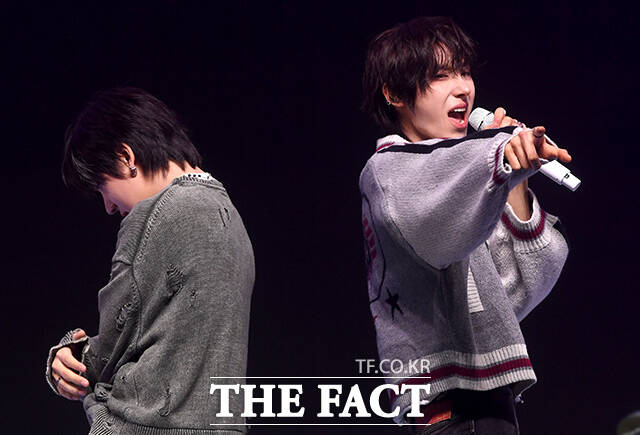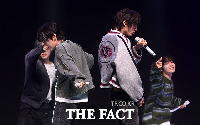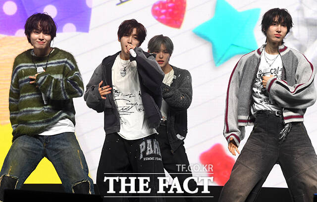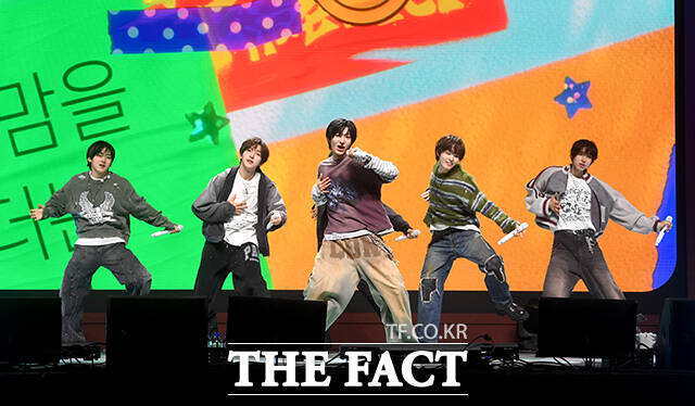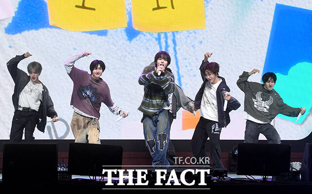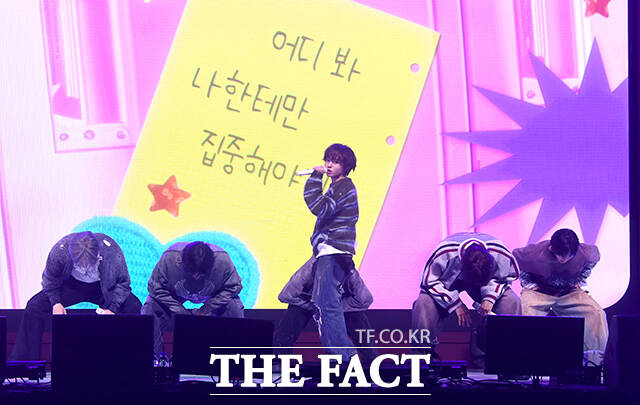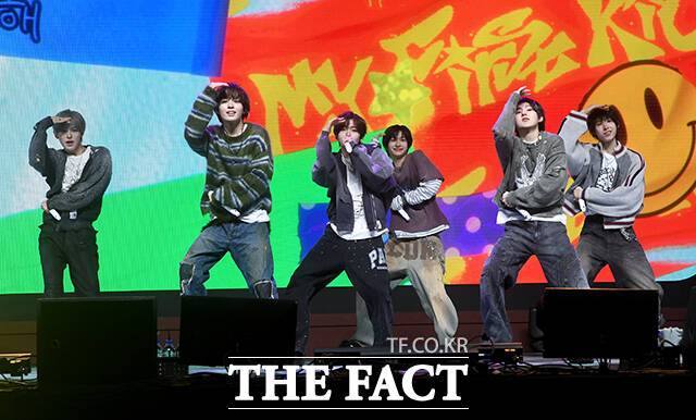 [더팩트 | 박상민 기자] 그룹 킥플립(KickFlip)이 6일 오후 서울 광진구 예스24 라이브홀에서 열린 네 번째 미니앨범 'My First Kick(마이 퍼스트 킥)' 발매 기념 쇼케이스에 참석해 타이틀곡 '눈에 거슬리고 싶어' 무대를 펼치고 있다.