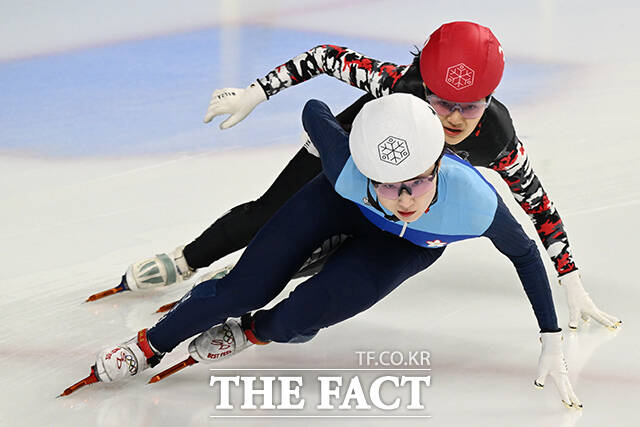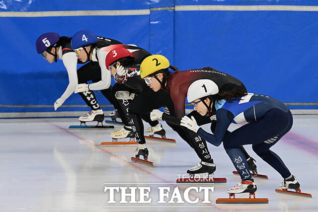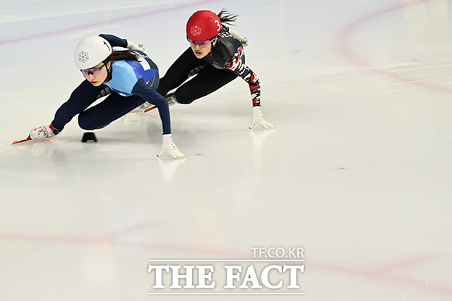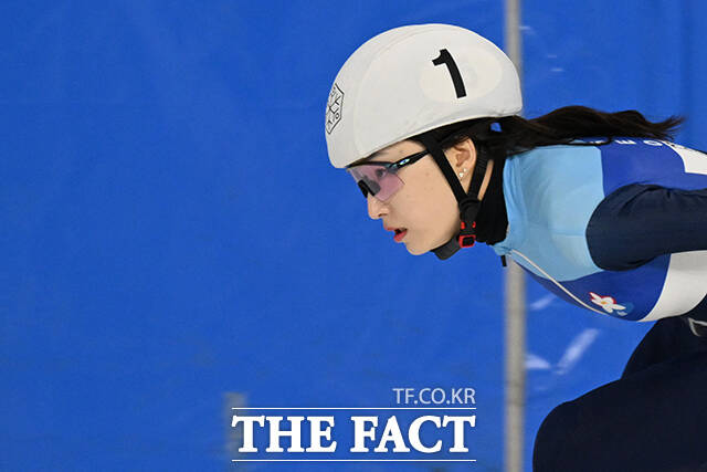 [더팩트 | 김성렬 기자] 올림픽 은퇴를 선언한 최민정이 8일 오후 서울 양천구 목동실내빙상장에서 열린 '2026-2027 쇼트트랙 국가대표 1차 선발대회' 여자 500m 예선에 출전해 역주를 하고 있다.