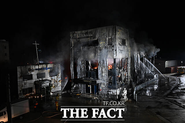 [더팩트ㅣ김성렬 기자] 16일 밤 경기 고양시 관산동 근린생활시설서 19시 38분께 화재가 발생한 가운데 소방당국이 진화작업을 벌이고 있다.