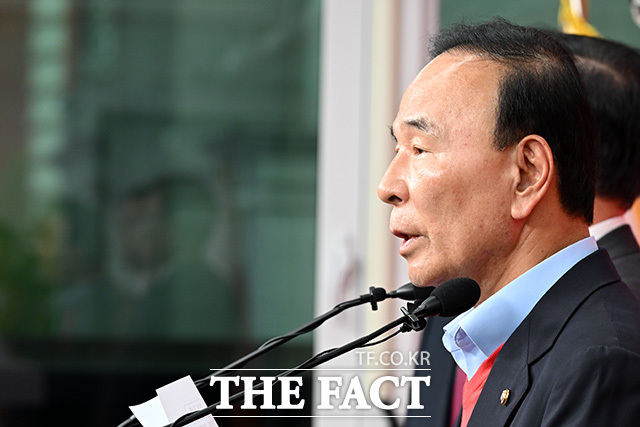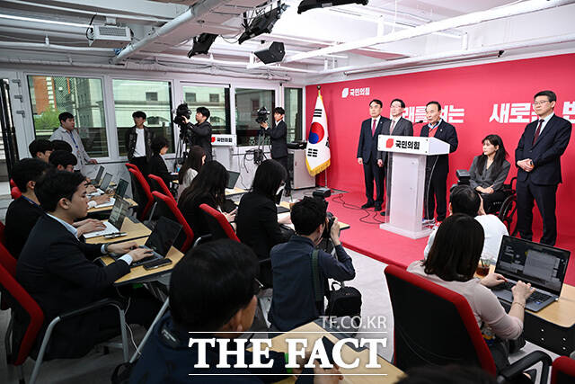 [더팩트ㅣ남용희 기자] 박덕흠 국민의힘 공천관리위원장이 17일 오후 서울 여의도 국민의힘 중앙당사에서 대구시장과 충북지사 경선 결과를 발표하고 있다.
