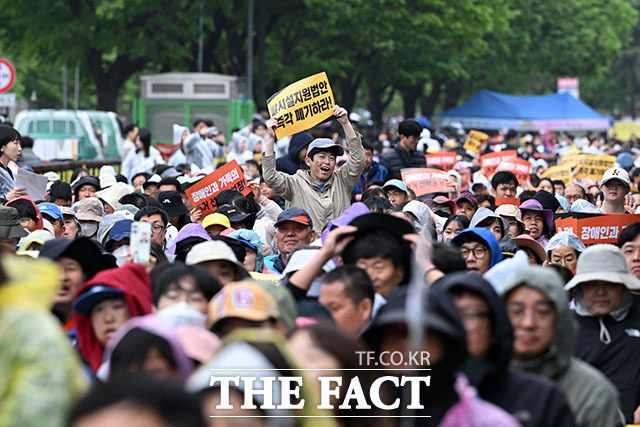 [더팩트ㅣ서예원 기자] 거주시설 장애인 권리 선포 대회가 20일 오후 서울 여의도 국회의사당 앞 도로에서 열린 가운데 참가자들이 손피켓을 들고 구호를 외치고 있다.