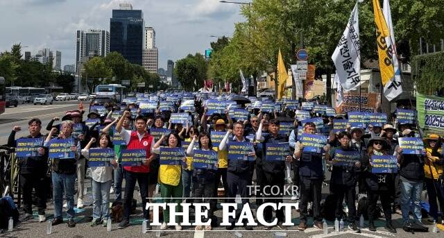 [더팩트ㅣ이다빈 기자] 전국민주노동조합총연맹(민주노총) 공공운수노조 화물연대본부 편의점지부 CU지회 집회 과정에서 물류차와 노조원이 충돌해 1명이 숨지고 2명이 다쳤다.