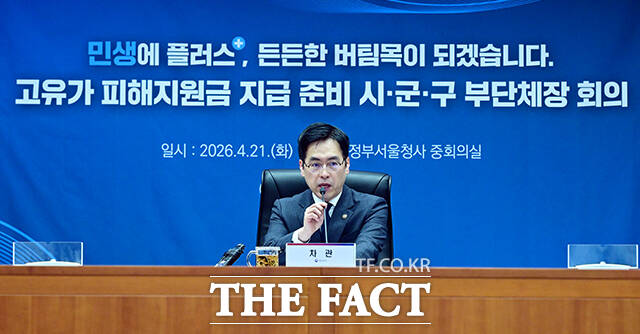 [더팩트ㅣ임영무 기자] 김민재 행정안전부 차관이 21일 오후 서울 종로구 정부서울청사에서 열린 고유가 피해지원금 시·군·구 준비상황 점검회의에 참석해 모두발언을 하고 있다.