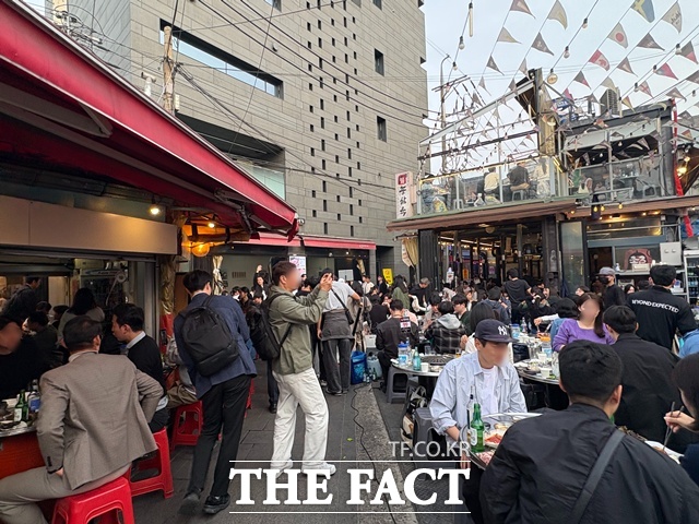 [더팩트ㅣ문화영 기자] 따뜻한 봄기운이 퍼지면서 서울 도심 골목마다 '야장'이 다시 활기를 띠고 있다. 종로와 을지로, 성북천 일대에는 식당 앞 테이블이 늘어서며 시민들의 발길을 끌고 있다. 특히 젊은층을 중심으로 '야장 맛집'이 SNS를 타고 확산되며 하나의 도시 문화로 자리 잡는 분위기다.