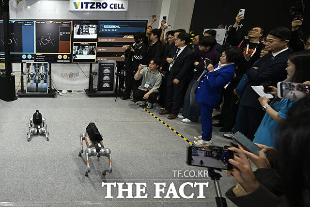 [더팩트 | 송호영 기자] 최민희 국회 과학기술정보방송통신위원회(과방위) 위원장과 김현 과방위 여당 간사, 최형두 과방위 야당 간사, 류제명 과학기술정보통신부 제2차관 등이 22일 오전 서울 강남구 코엑스에서 개막한 '2026 월드IT쇼'에 참석해 AI 로봇을 살펴보고 있다.