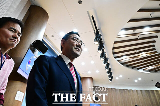 [더팩트ㅣ국회=배정한 기자] 주호영 국회부의장이 23일 오후 서울 여의도 국회 소통관에서 기자회견을 열고 대구시장 출마와 관련된 발언을 하고 있다.